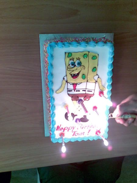 Sadik's spongebob cake. Happy Birthday Tom!{: