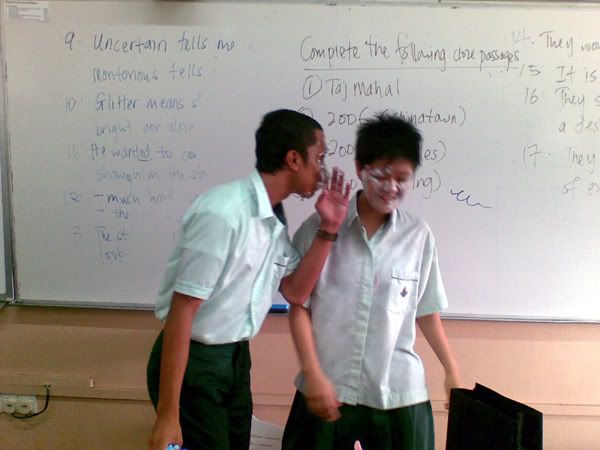 Longyin and the Bigbigbig paper heart I folded :) She stapled it to her uniform!